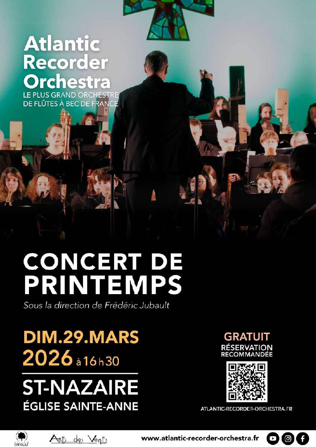 Retrouver le plus grand orchestre de flûtes à bec de France, » Atlantic Recorder Orchestra » est de retour à Saint-Nazaire pour vous proposer un concert de printemps aux saveurs poétiques et printanières. Au détour d’un chant sacré ou d’une marche persane méditative, laissez-vous guider par la lumière cristalline de la sopranino, ou évadez-vous dans les profondeurs de la sous-contrebasse. Un concert joyeux, poétique et éclectique vous attend, pour le plaisir de tous